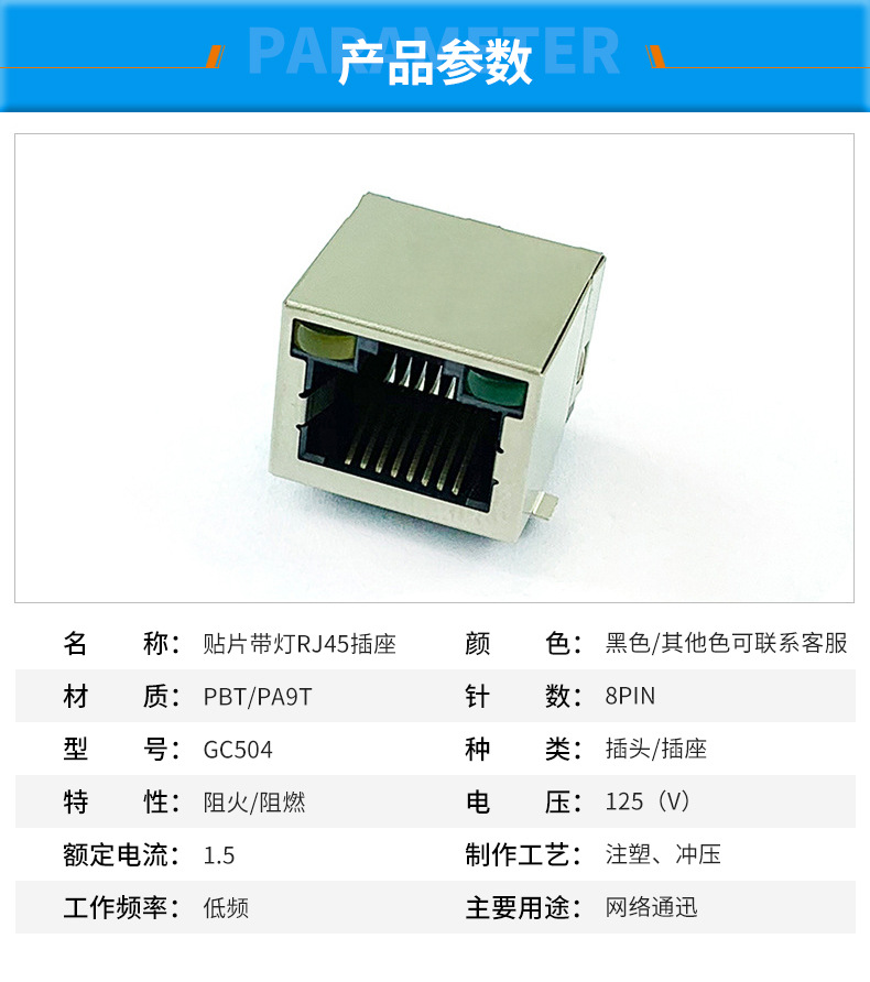 貼片帶燈RJ45插座